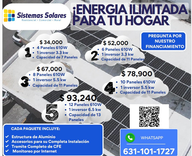 6 paneles de 610W más 1 inversor de 3.3 kW con capacidad de hasta 11 paneles. Perfecto para familias que requieren un mayor consumo de energía.